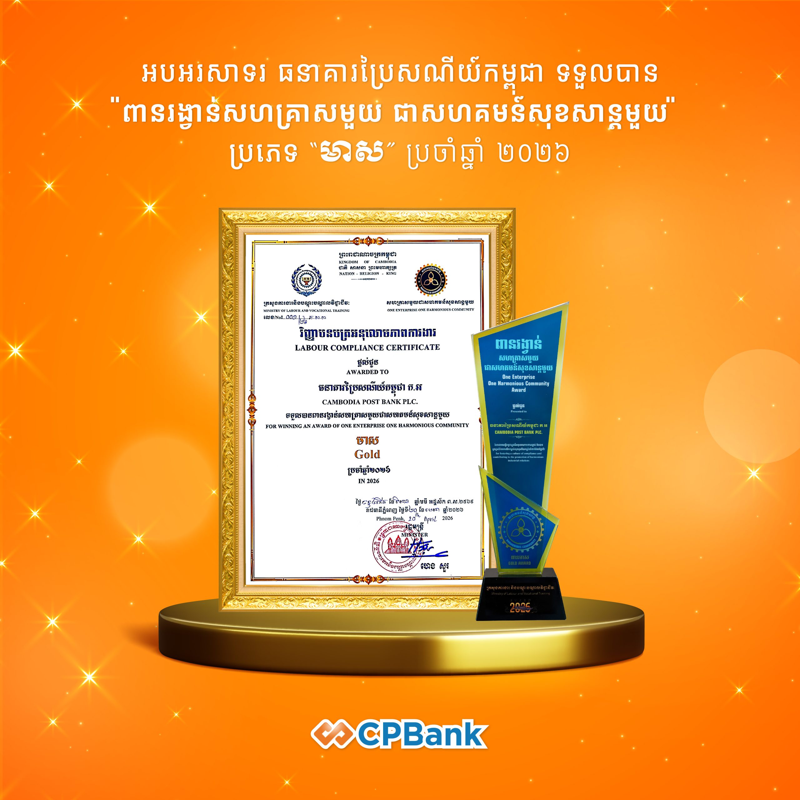 The award was presented to the Bank on 26 April 2026 under the highest patronage of Samdech Moha Borvor Thipadei Hun Manet, Prime Minister of the Kingdom of Cambodia. The ceremony took place during a meeting with leaders of professional organizations, held in conjunction with the 140th anniversary of International Labors’ Day (1 May), under the theme “Together to Build Resilience for Decent Work.”