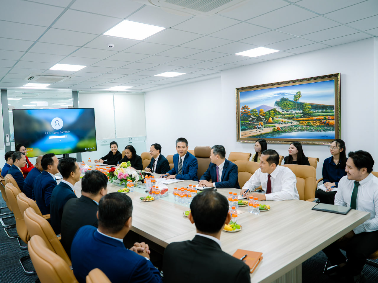 Courtesy of the National Bank of Cambodia Delegation It is our honor to welcome His Excellency Yim Laet, Deputy Governor of the National Bank of Cambodia, and many other accompanying delegations on an official visit to the headquarters of the Cambodia Post Bank on the afternoon of October 2, 2025.